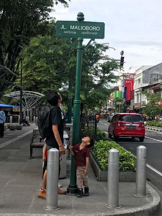 Salah satu spot ikonik di Malioboro tentu saja papan nama jalan yang terpasang